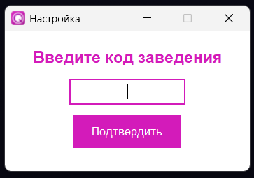 3. При первом запуске приложение запросит код заведения, который вы можете найти в личном кабинете или запросить у своего менеджера
